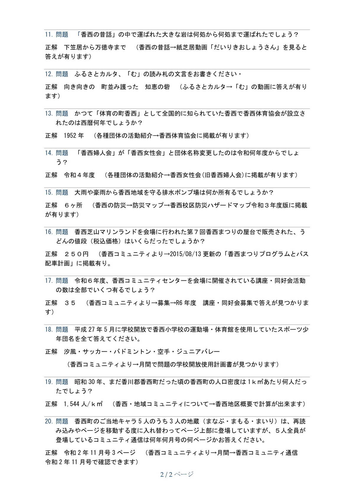 「キラッと香西検定試験解答」
