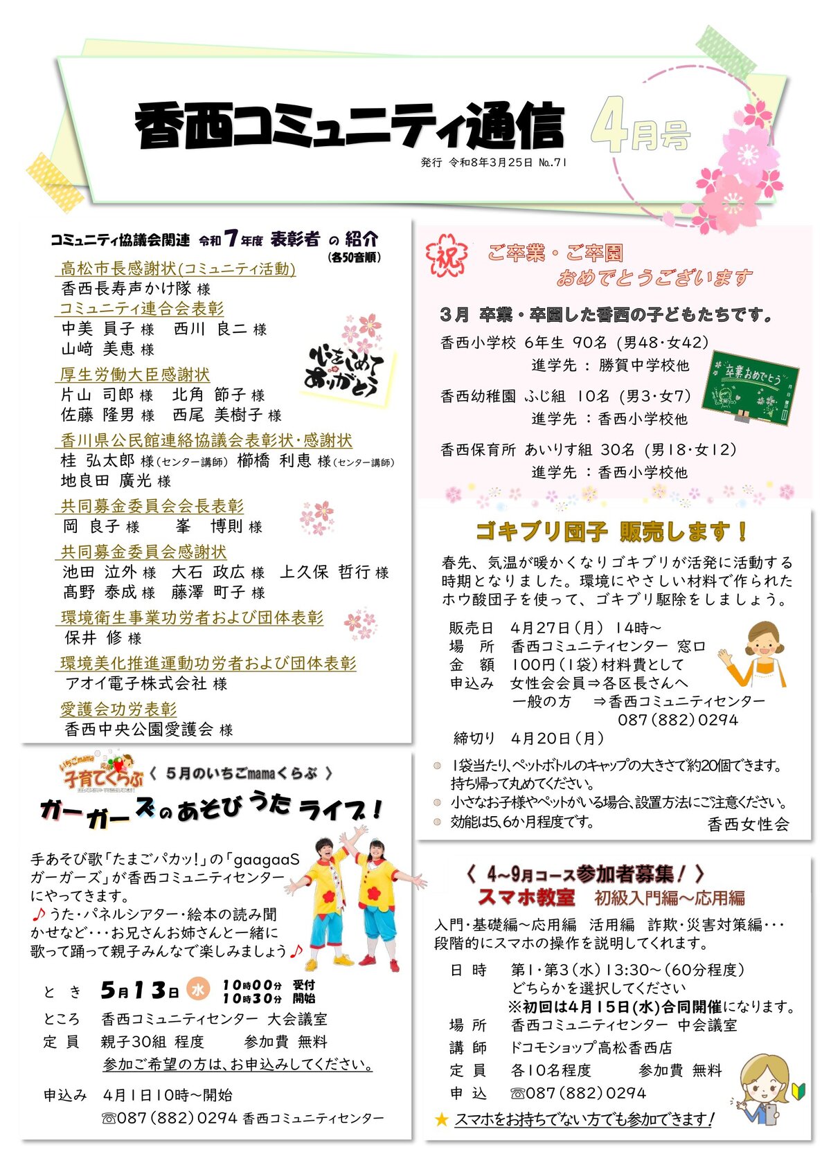 香西地区コミュニティの日々活動を写真や動画でご紹介