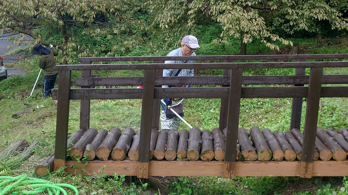 2025/10/05日環境部会が香西里山いこいの場整備を実施しました。 夜中から降り続いた雨も作業開始前に上がり、環境衛生組合協議会から5名、ボランティアさんが4名の参加を頂きました。 先月の整備で草刈りをした里山はたった1か月で全体に雑草が生い茂っていました。 18日に歩こうふるさとの道の勝賀山登山コースの参加者が立ち寄る事も有り、参加者全員で草刈り作業を行いました。草刈り機3台で全体の刈りこみ、残り6名が花壇の中の雑草処理や、遊歩道上の雑草の片付け等を手分けして行ったおかげで見違えるようになりました、参加者の皆さんお疲れさまでした、ありがとうございました。 取材 記事 環境衛生組合協議会 |