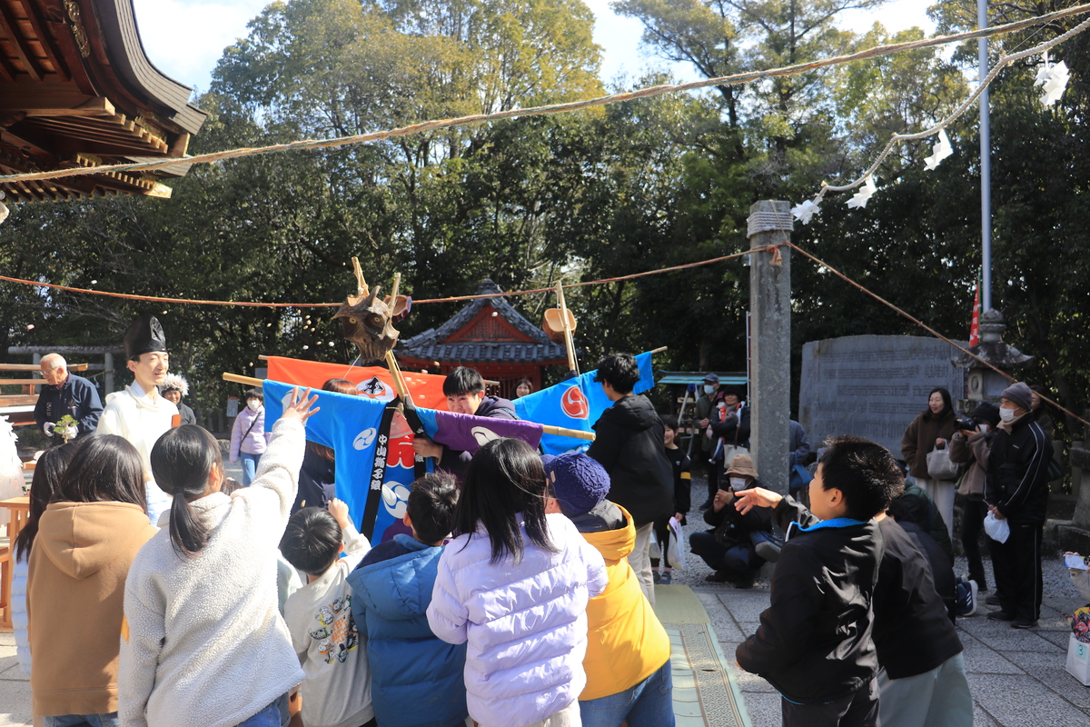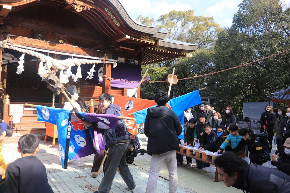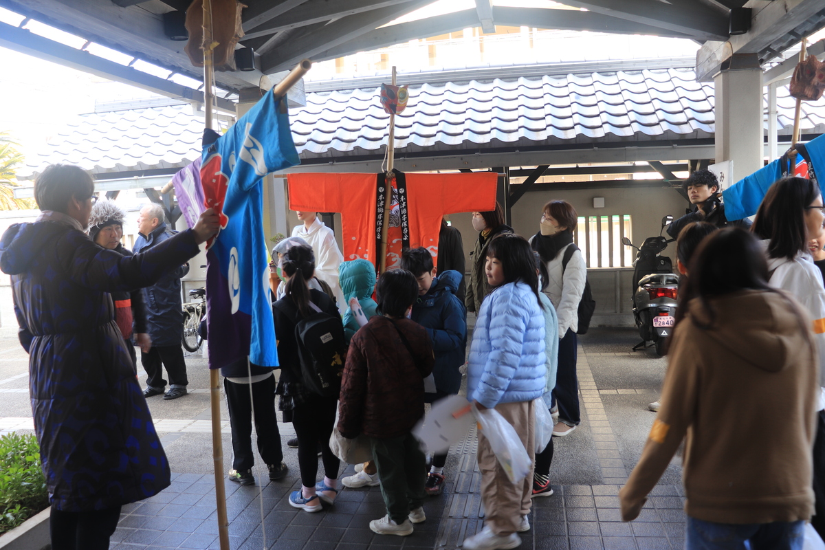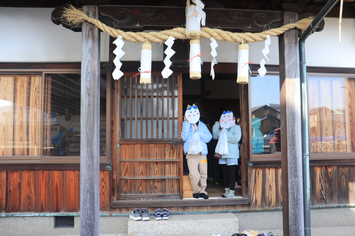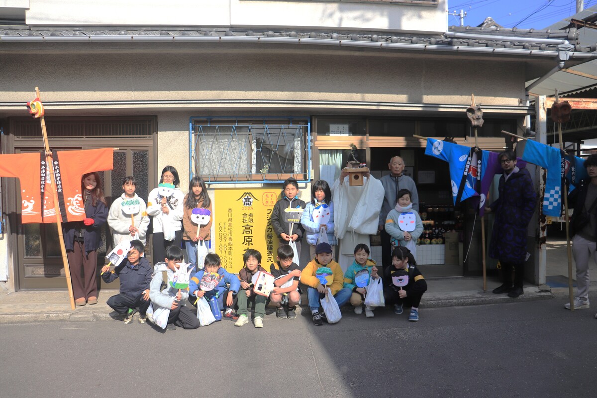 R8年2月1日、香西観光協会・宇佐八幡宮の主催で笠居郷節分祭「おんのまいいた〜」が開催されました。 香西コミュニティセンターで行われた親子お面づくりの後、コミセン出発で町内を回った後は宇佐八幡宮で豆まきに参加、その後笠居郷各地で行われた狼煙上げを見学しました。 *「おんのまい いた〜(鬼の豆ください)」は、香川県高松市の宇佐八幡宮周辺に伝わる節分の伝統的な風習です。地域の子どもたちが手作りの鬼の面を被り、「おんのまいいた〜」と言いながら家々を回ってお菓子や豆をもらう、子供たちのための節分行事です。
