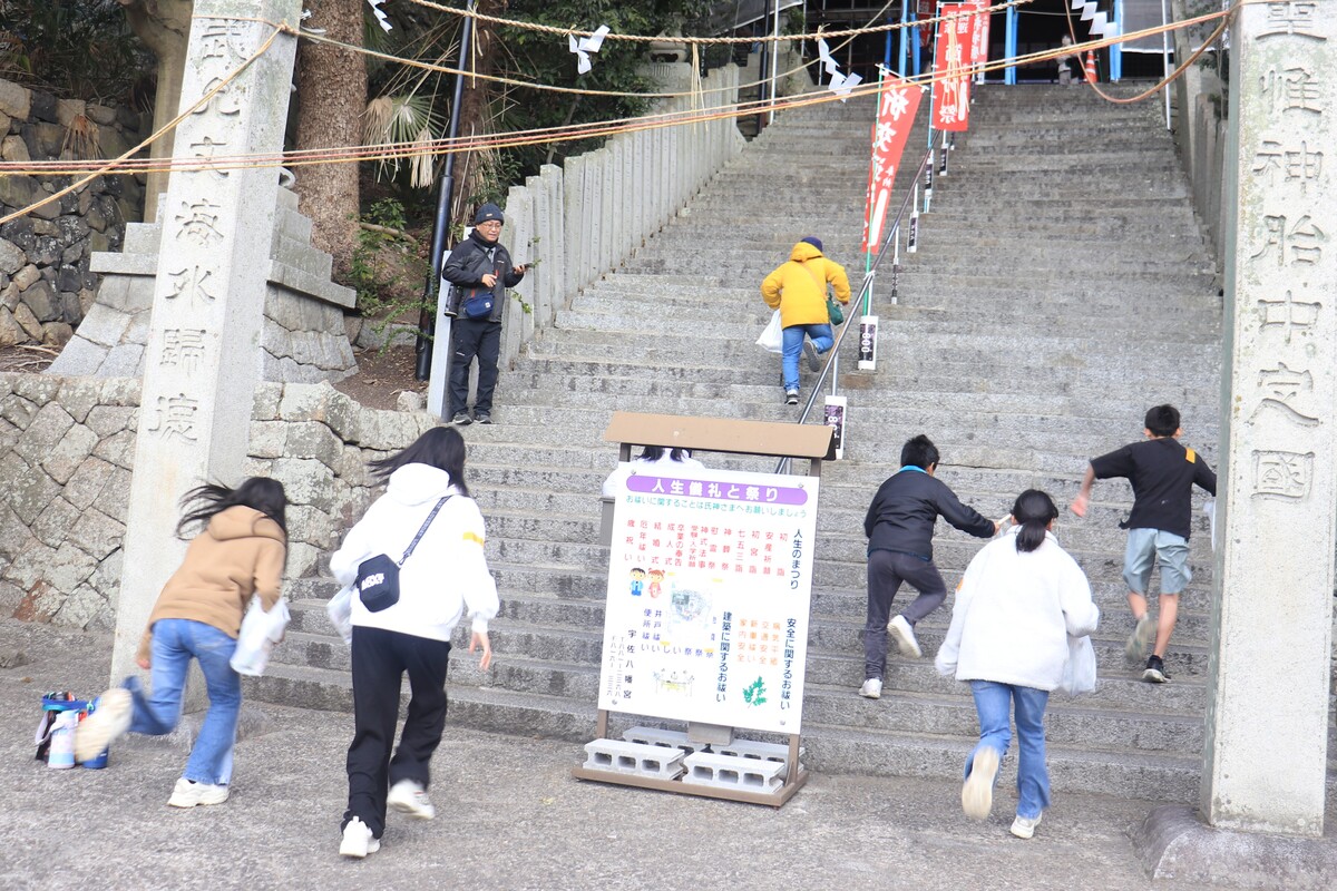 「宇佐八幡宮で拝殿迄の駆け上がり競争」 (ホームページ委員会撮影)
