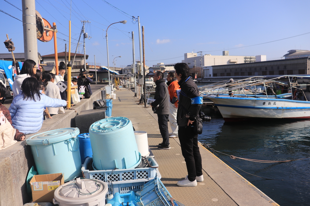 「途中香西漁港に寄って漁師さんから採れたての海苔を頂きました」 (ホームページ委員会撮影)