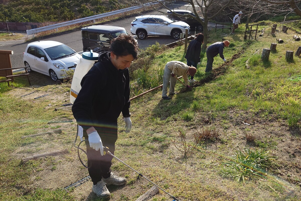 2026年3月1日、環境部会が香西里山いこいの場整備を実施、今月は環境衛生組合から3名、ボランティアさんが4名参加しました。 匿名で里山に寄贈されていた彼岸花の球根植え、除草剤の散布、施設メンテナンスを行いました。春の陽気の中気持ち良く作業出来ました。お疲れさまでした。 取材・記事 環境衛生組合協議会 |