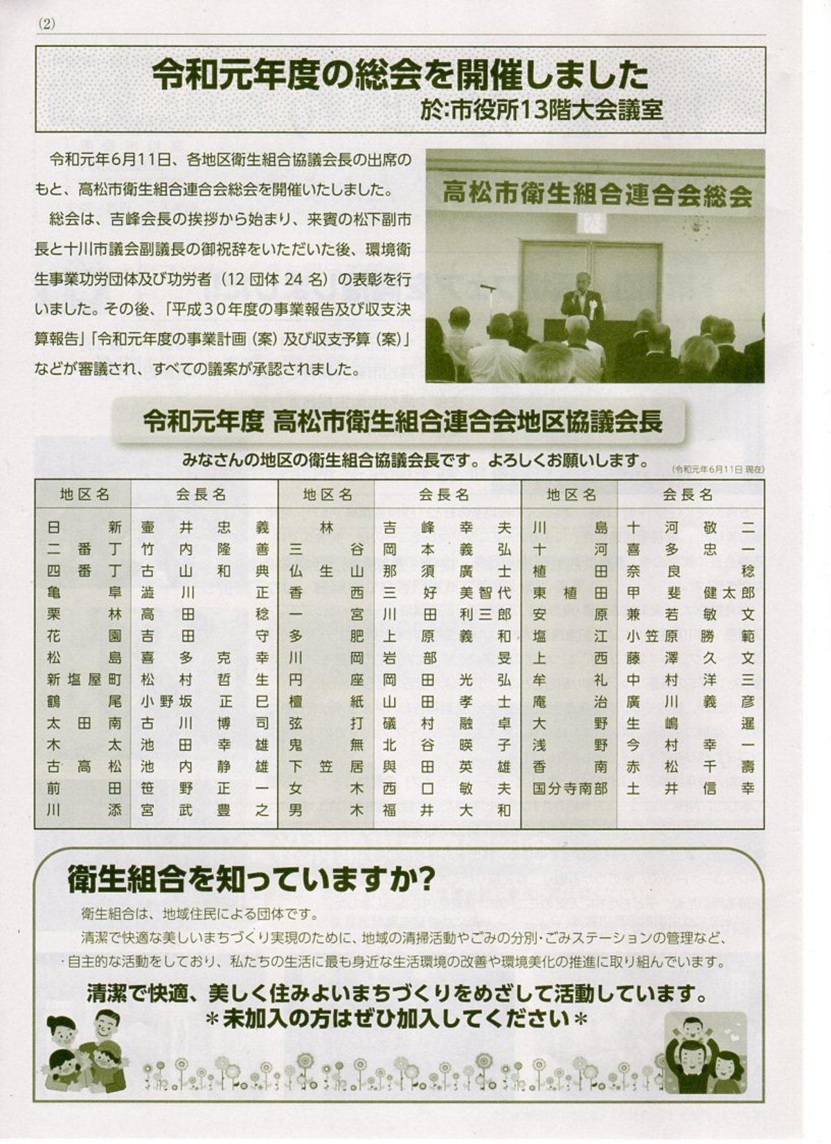 高松市衛生組合連合会発行の「衛生だより」が発行されました