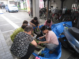 平成28年6月22日 コミュニティーセンターのプランターに婦人会 の有志でお花を植えてくれました。雨の中の作業にも関わりませず 皆さん、手も真っ黒になりながら、お花を植えてくれました。 通行者も、お花を見て、ホッとするひと時があれば幸いです。 |