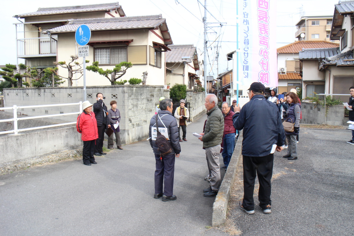 12月1日(日)地域の企業や各種団体で組織された「香西長寿声かけ隊」の主催する「認知症やさしい声かけ模擬訓練」が、ふれあい福祉センター勝賀と明神地区で実施されました。 今年度で4回目となり、10自治区で開催されたことになります。 明神北、南自治会・高松市・高松北署の協力を頂き、ふれあい福祉センター勝賀の会議室で「通報〜連絡〜捜査〜発見〜保護」までを勉強した後に、明神地区で認知症役の人に複数のポイントで声をかけ、最終的に警察に連絡して保護して頂くまでを訓練しました。 |