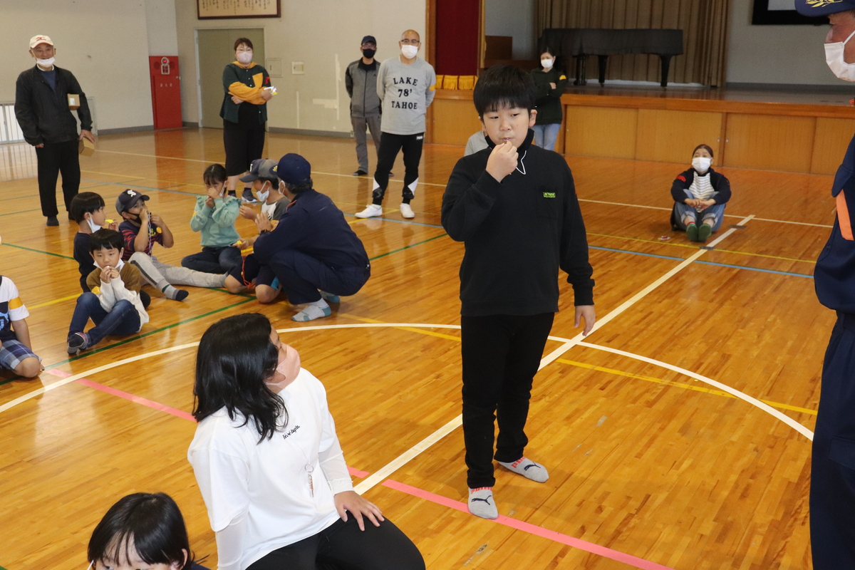 「防災ホイッスル競争」 (ホームページ委員会撮影)