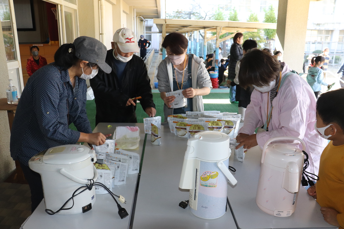 「ゲームの途中からアルファ米の準備作業」 (ホームページ委員会撮影)