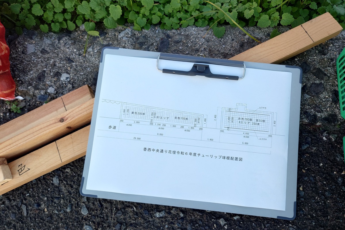 「今年の球根配置図」 (環境衛生組合協議会撮影)