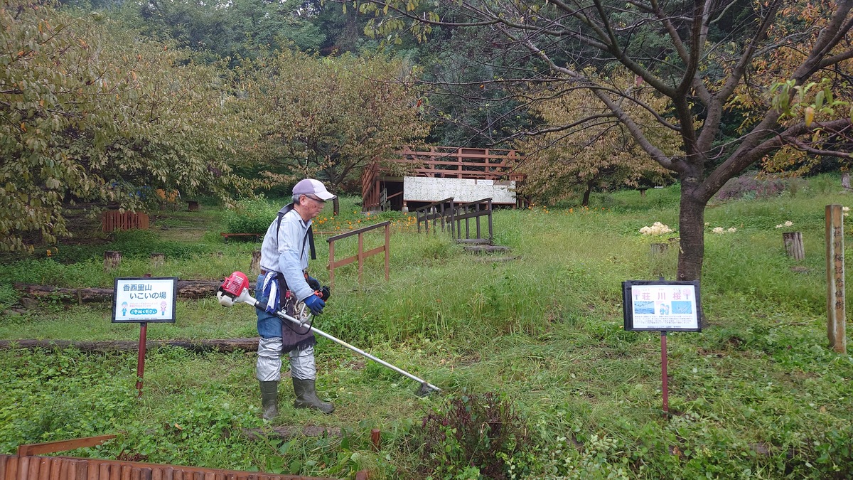 2025/10/05日環境部会が香西里山いこいの場整備を実施しました。 夜中から降り続いた雨も作業開始前に上がり、環境衛生組合協議会から5名、ボランティアさんが4名の参加を頂きました。 先月の整備で草刈りをした里山はたった1か月で全体に雑草が生い茂っていました。 18日に歩こうふるさとの道の勝賀山登山コースの参加者が立ち寄る事も有り、参加者全員で草刈り作業を行いました。草刈り機3台で全体の刈りこみ、残り6名が花壇の中の雑草処理や、遊歩道上の雑草の片付け等を手分けして行ったおかげで見違えるようになりました、参加者の皆さんお疲れさまでした、ありがとうございました。 取材 記事 環境衛生組合協議会 |