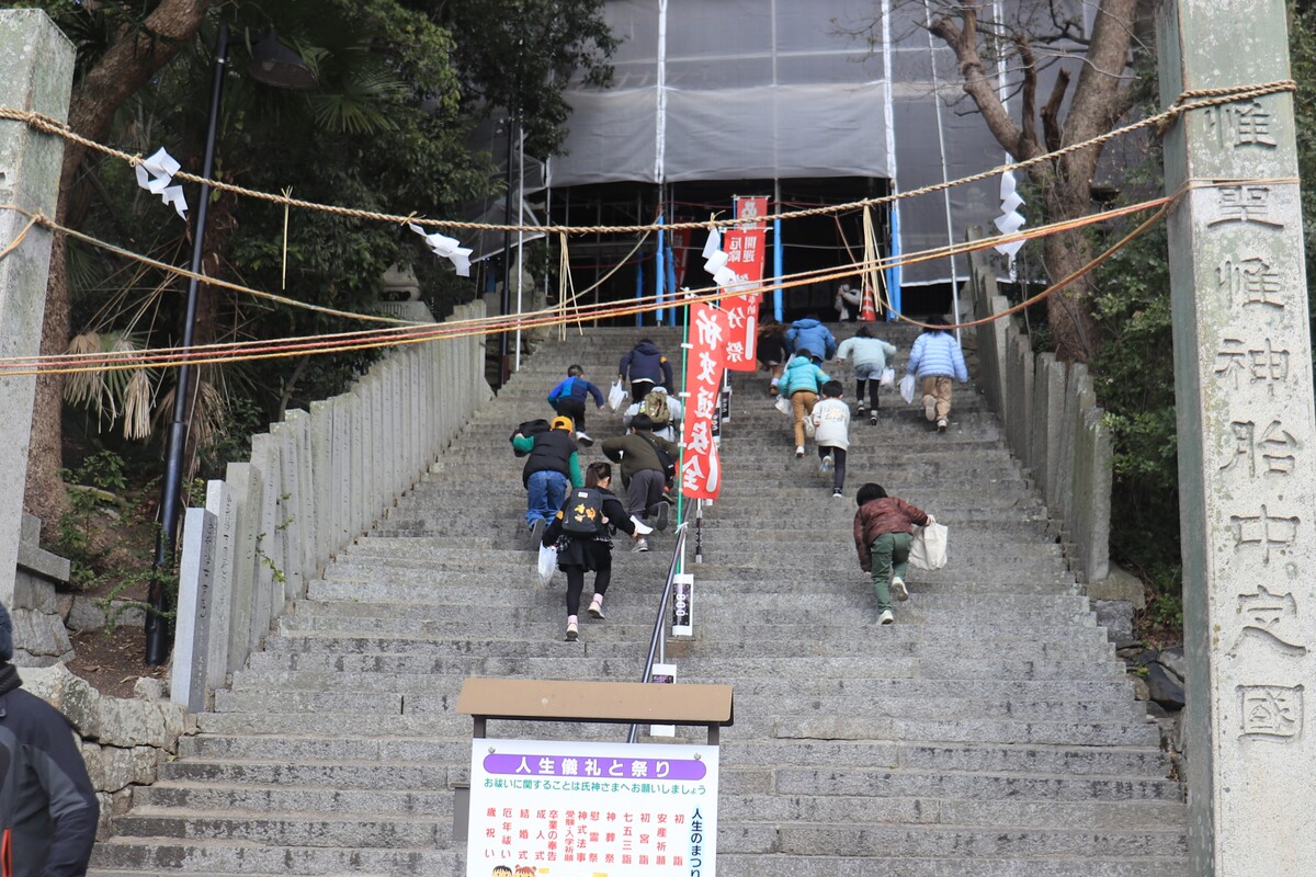 「宇佐八幡宮で拝殿迄の駆け上がり競争」 (ホームページ委員会撮影)