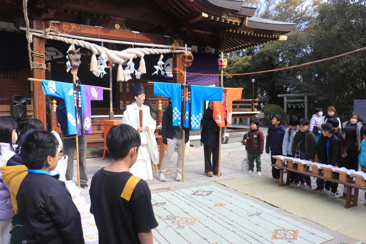 R8年2月1日、香西観光協会・宇佐八幡宮の主催で笠居郷節分祭「おんのまいいた〜」が開催されました。 香西コミュニティセンターで行われた親子お面づくりの後、コミセン出発で町内を回った後は宇佐八幡宮で豆まきに参加、その後笠居郷各地で行われた狼煙上げを見学しました。 *「おんのまい いた〜(鬼の豆ください)」は、香川県高松市の宇佐八幡宮周辺に伝わる節分の伝統的な風習です。地域の子どもたちが手作りの鬼の面を被り、「おんのまいいた〜」と言いながら家々を回ってお菓子や豆をもらう、子供たちのための節分行事です。